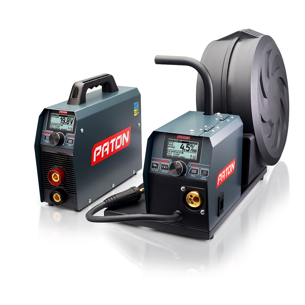 Toate aparatele de sudură PATON MIG/MAG sunt adaptate pentru sudarea cu sârmă autoconsumatoare. O astfel de sudare, spre deosebire de procesul tradițional de sudare MIG/MAG, se realizează fără gaz de protecție – cu toate acestea, necesită un fir de sudură special. Sârma produce propriul ecran de protecție, care ajută la protejarea arcului de sudură. Sârma autoprotejată potrivită pentru mașinile de sudură PATON poate fi achiziționată de aici – bobinele de 5 kg de sârmă se potrivesc tuturor alimentatoarelor de sârmă.